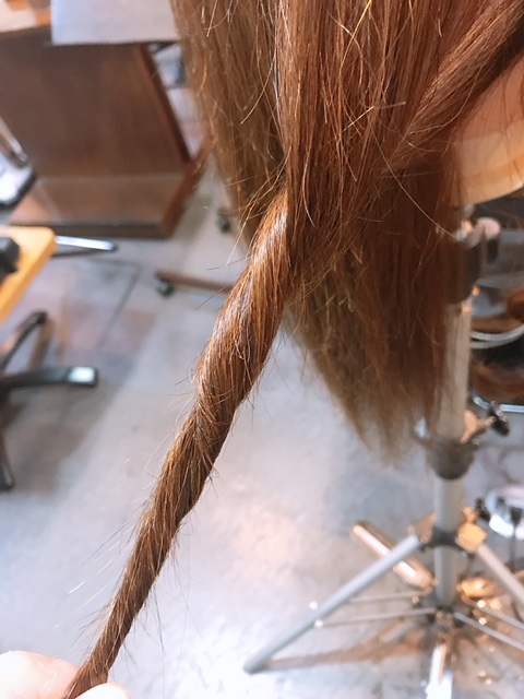 それから前回は、アイロンを挟んでいつも通りに巻いて毛先を残してアイロンを抜いてねじれた状態のまままた巻くといった感じの巻き方をお教えしましたが、今回は最初に毛をねじります!