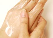 ハンドクリームが温まったら、手全体に広げます。