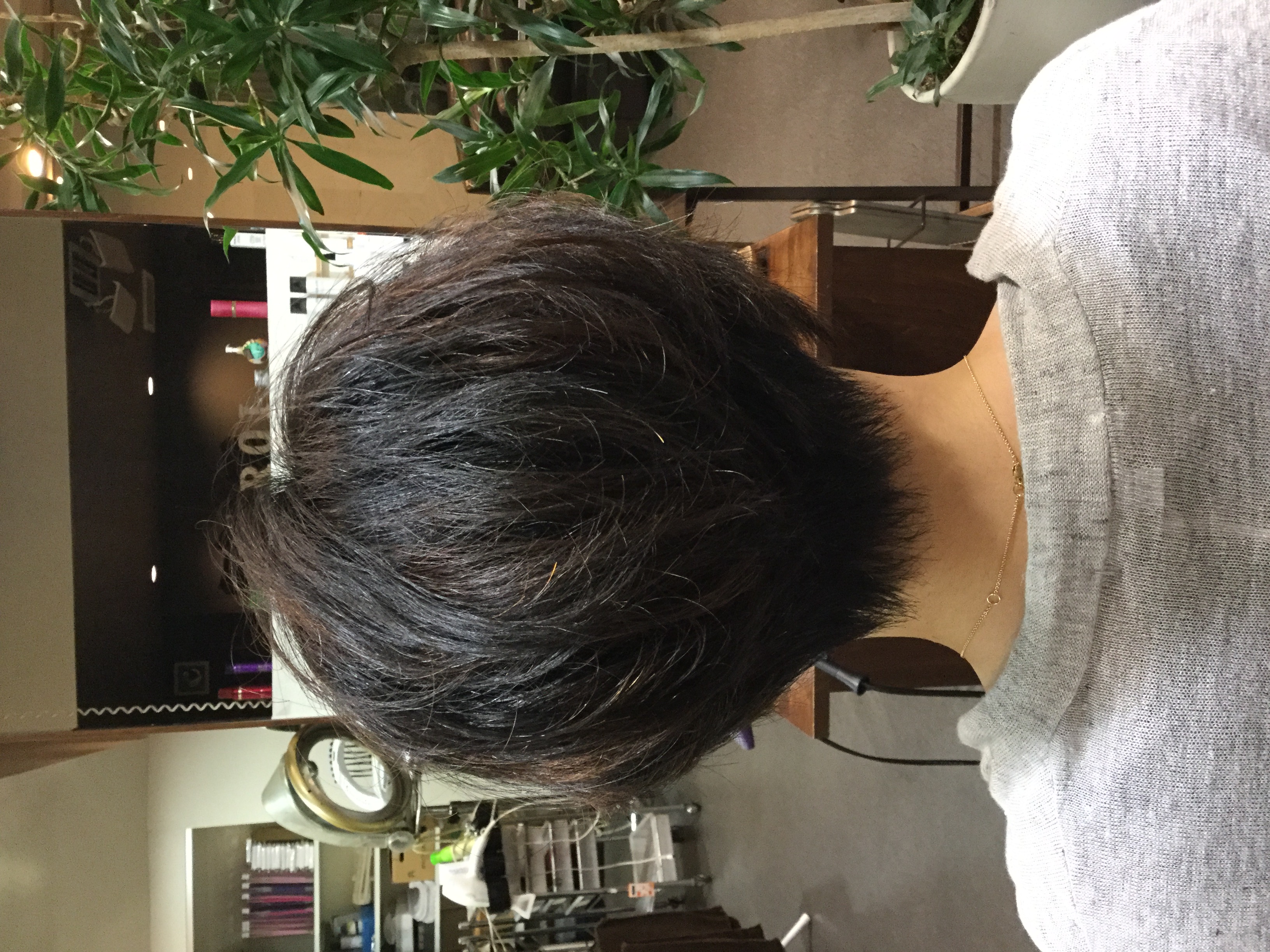次の方は・・・スタッフの絵里さんの髪を久しぶりに短くしました。