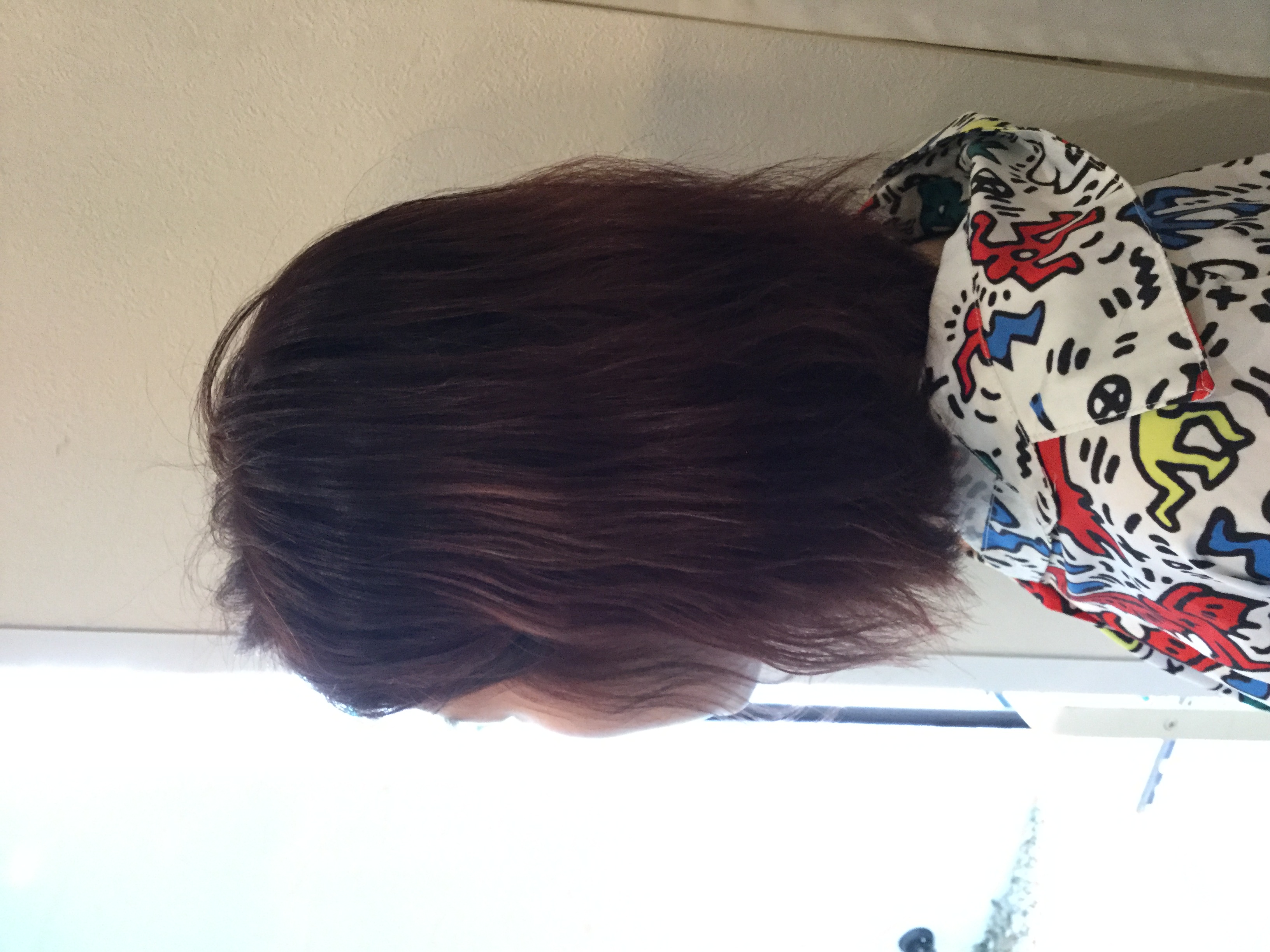 この方はベージュ系になるように髪の赤みを消しながらヘアカラーしています。
