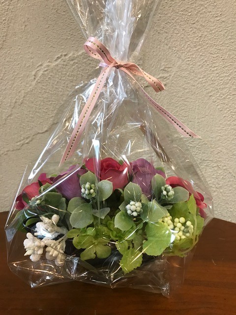 そこで今回はお客様が作ってくださっているかわいいお花の置物を贈ることにしました!!